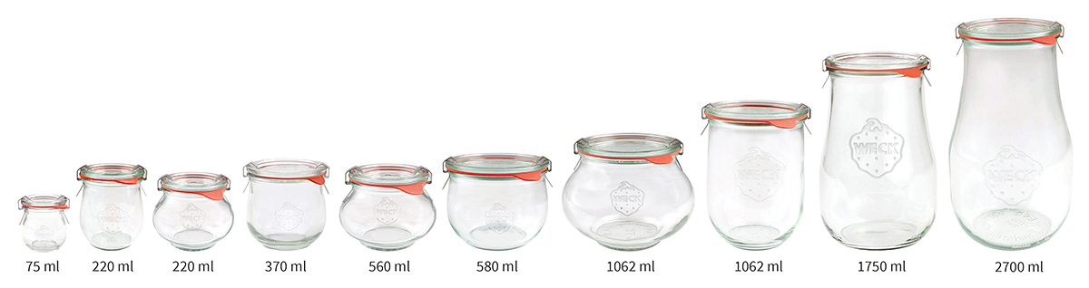 Wybierz spośród różnych rozmiarów pękatych słoików do wekowania z klamrą, które doskonale nadają się do przygotowywania kompotów, dżemów lub kiszenia różnych składników.
